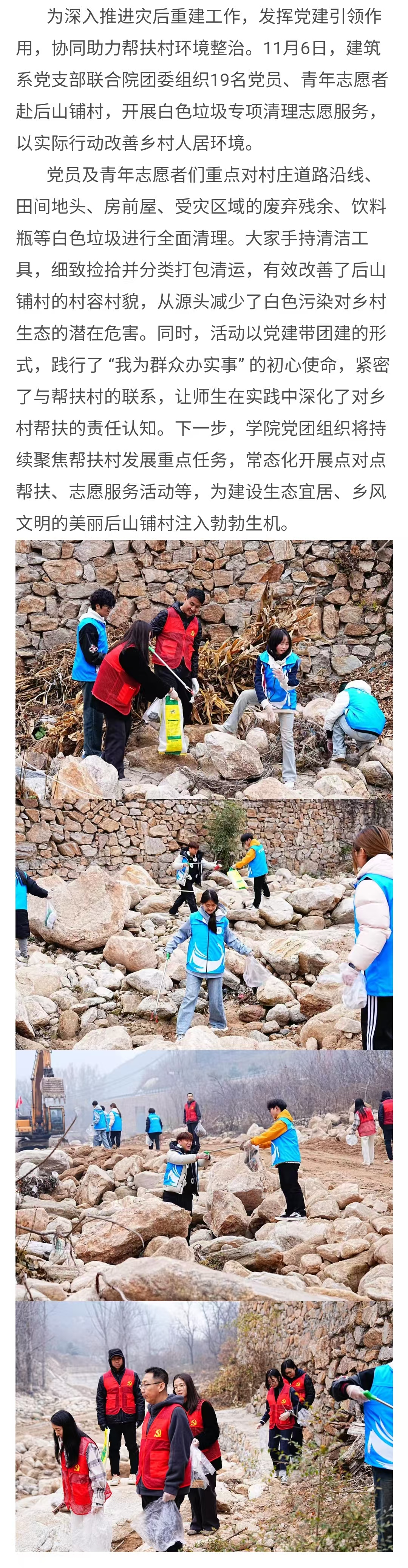 党建引领聚合力 环境整治助振兴 —— 建筑系党支部联合院团委开展后山铺村环境整治工作
