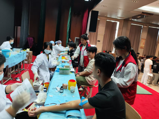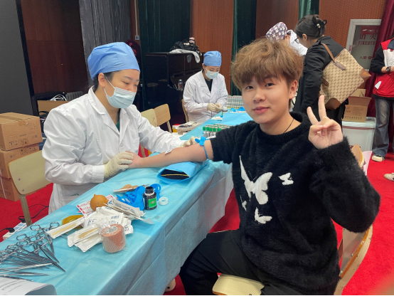 学生处为此次献血活动做好了统筹安排、场地设置、后勤保障、应急处理等服务工作。全体辅导员老师始终坚守在献血活动一线,陪伴学生报名、体检、抽血、领取证书纪念品以及补助的每一个环节。院红十字会的志愿者引导大家依次有序进行了信息登记、体温检测、血液类型检验、静脉采血等,并大家提供了温热的红糖水、补充能量的果汁,为突发晕厥的学生提供了紧急救助。