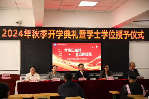 秋色为引,扬帆筑梦。10月13日下午,北京开放大学怀柔分校以“现场典礼+云端直播”的方式举行2024年秋季开学典礼暨学士学位授予仪式。分校全体教职工和学生代表参加现场活动,部分同学通过云端观看直播,共同开启2024级学生新的学习历程。开学典礼由副校长李雪主持。