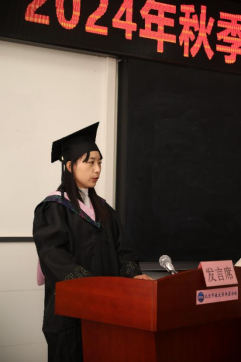 2018级开放教育本科行政管理专业彭然同学代表毕业生发言,她分享了自己的学习心得,并为新生送上了真挚的祝福。