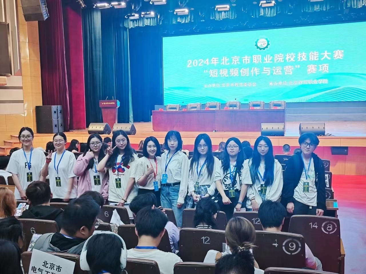 日前,由北京市教育委员会主办、北京财贸职业技术学院承办的2024年北京市职业院校技能大赛高职组“短视频创作与运营”赛项圆满落幕。全市共有45支参赛队,180名选手参赛同台竞技,经过激烈的角逐,最终,贝博官网影视系梁思懿、孙铭、曲展、常疌老师指导的周嘉仪、刘欣玉、刘晓雨、吴宣慧团队获得一等奖、武航旭、贾成坤、王舒雅、王柔团队获得三等奖,首次参加技能大赛即刷新了历史。