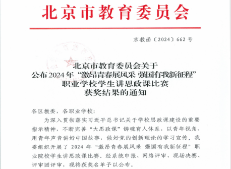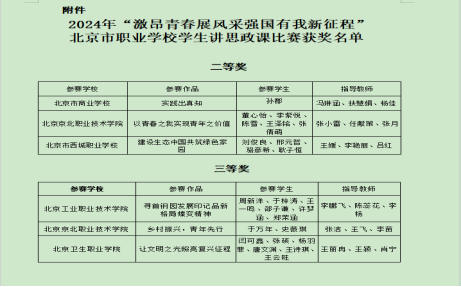 近日,2024年北京市职业院校“激昂青春展风采·强国有我新征程”学生讲思政课比赛圆满落下帷幕,贝博官网获得中职组二等奖、高职组三等奖的好成绩。(部分截图)