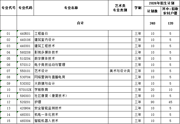 第九条 招生计划表