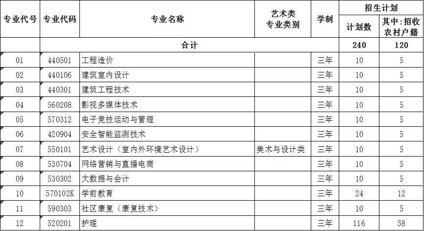 第九条 招生计划表